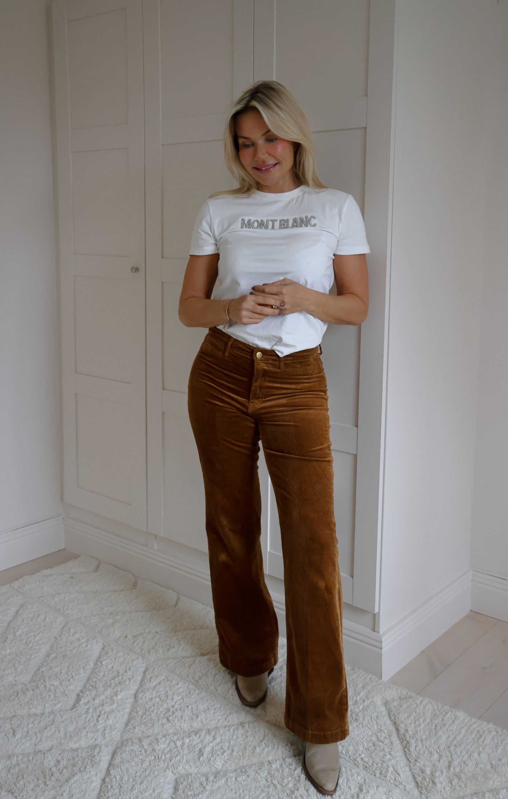 Manchesterbyxor kan verkligen vara både toksnygga och tokfula tycker jag. Är tyget för trist och matt och det är fel modell så blir det inte bra. Nej det ska vara sån lite blank lyxig manchester och bootcutmodell om ni frågar mig. Med 70-talsvibbar ni vet. Såg dessa på någon influencer och var tvungen att köpa precis samma och jag är väldigt nöjd med köpet! Smiter åt runt rumpa och lår och är lite långa i modellen och blir så bra med ett par boots i westernstil med lite klack.
