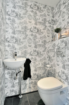 Underbar gästtoalett. Älskar Toile de Jouy! Kanske skulle ha det nånstans…