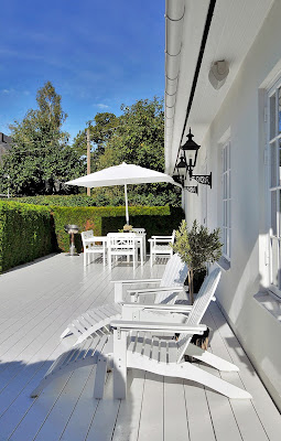 Riktigt tjusigt med vitmålat altangolv, men funkar det? Vi ska nu renovera vår 50 kvm stora altan på andra våningen. Snickarna kommer imorgon och ska göra ett nytt högt och barnsäkert träräcke. Sen ska trägolvet fixas. Det blir antingen svartoljat, gråbetsat eller vitt kanske?