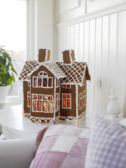 Det bästa och mest väldoftande dekorationen är ändå pepparkakshuset tycker jag. Varje år så gör jag en ny variant av pepparkakshus som får pryda köket. Det är så kul! Fotot ovan är från Lucia förra året och det är alltså 2008 huset som syns. Undra vad jag ska hitta på i år? Kanske en liten kopia på vår villa eller huset i Normandie…vi får se vad jag hittar på 🙂