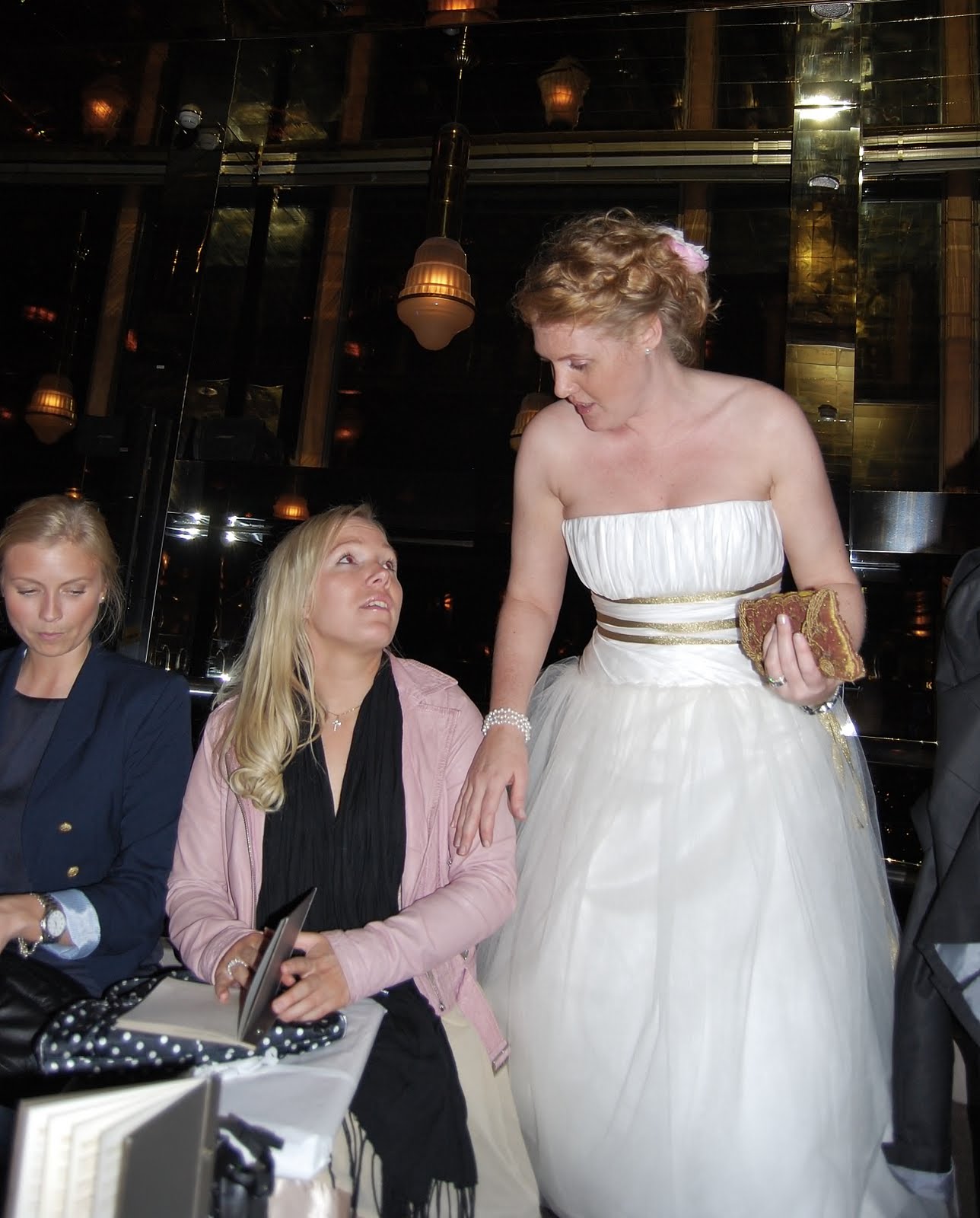 Kl 18.47. Glad lillasyster glädjs åt sin storebrors fina dag! Jacka Juicy Coture, klänning Tiger och heels från Oscar de la Renta(samma som jag hade på mitt eget bröllop bara 5 dagar tidigare!)