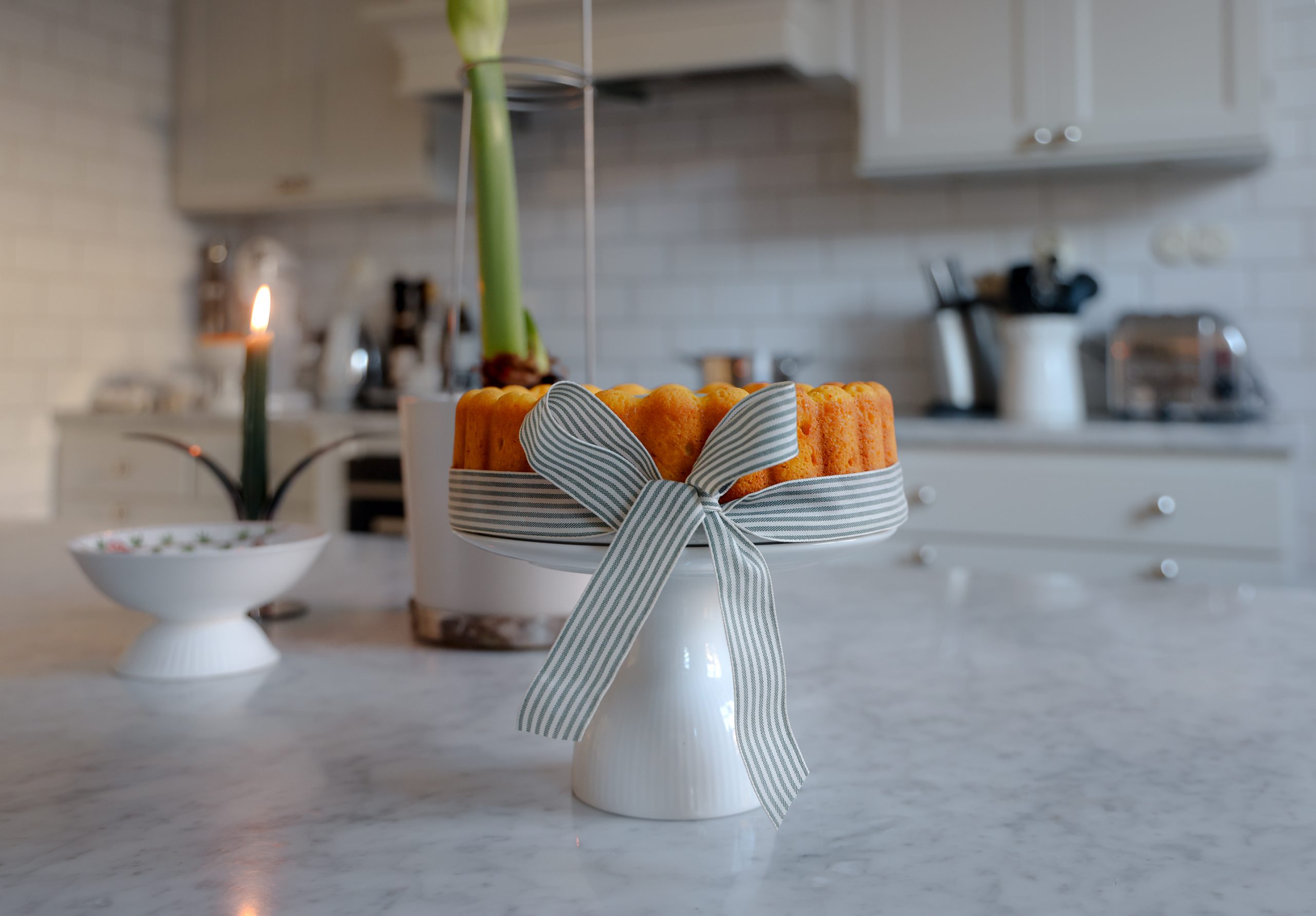 All bakning av kakor och bullar blir godare med lite mandelmassa påstår jag och det är i denna kaka med ett härligt täcke av vit choklad. Vit choklad i saffransbullsdegen har jag bakat men här är alltså chokladen på toppen av kakan.