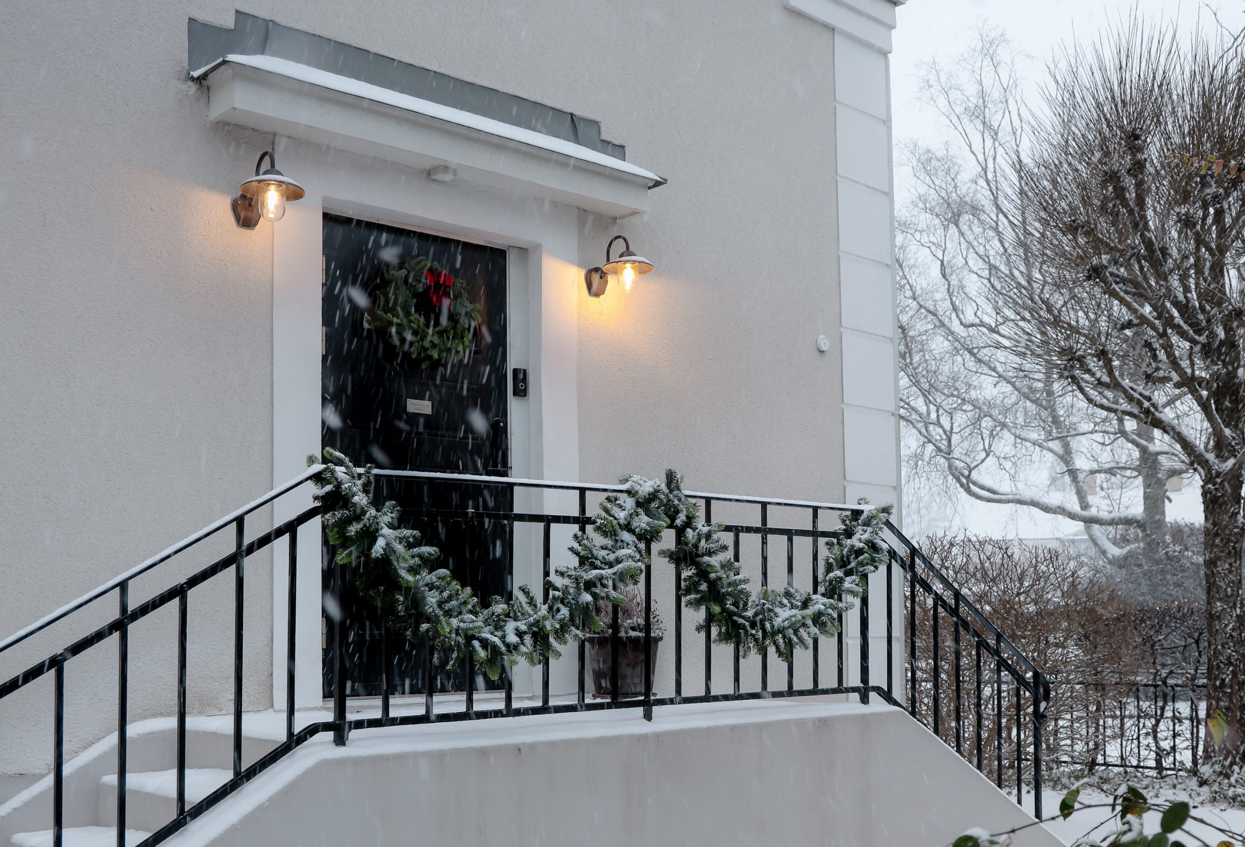 Winter wonderland – nu kan adventstider komma till oss! Jo det ska stå två enar på varsin sida av entrédörren också, hann liksom inte få till det idag..