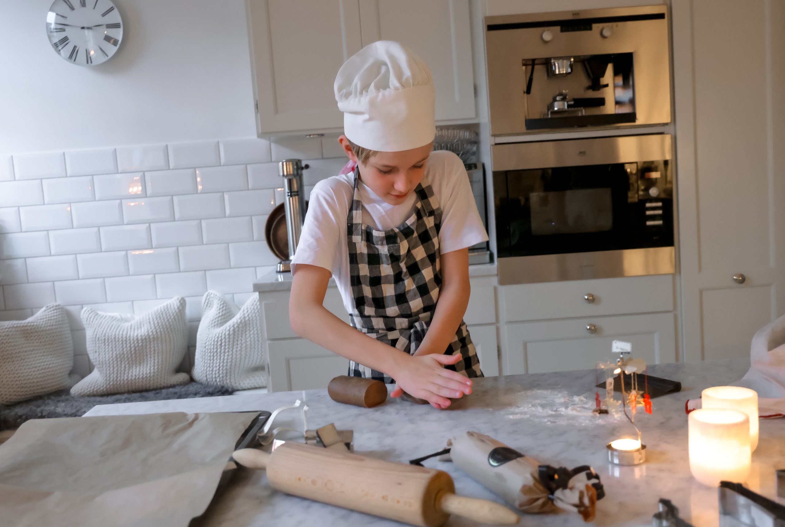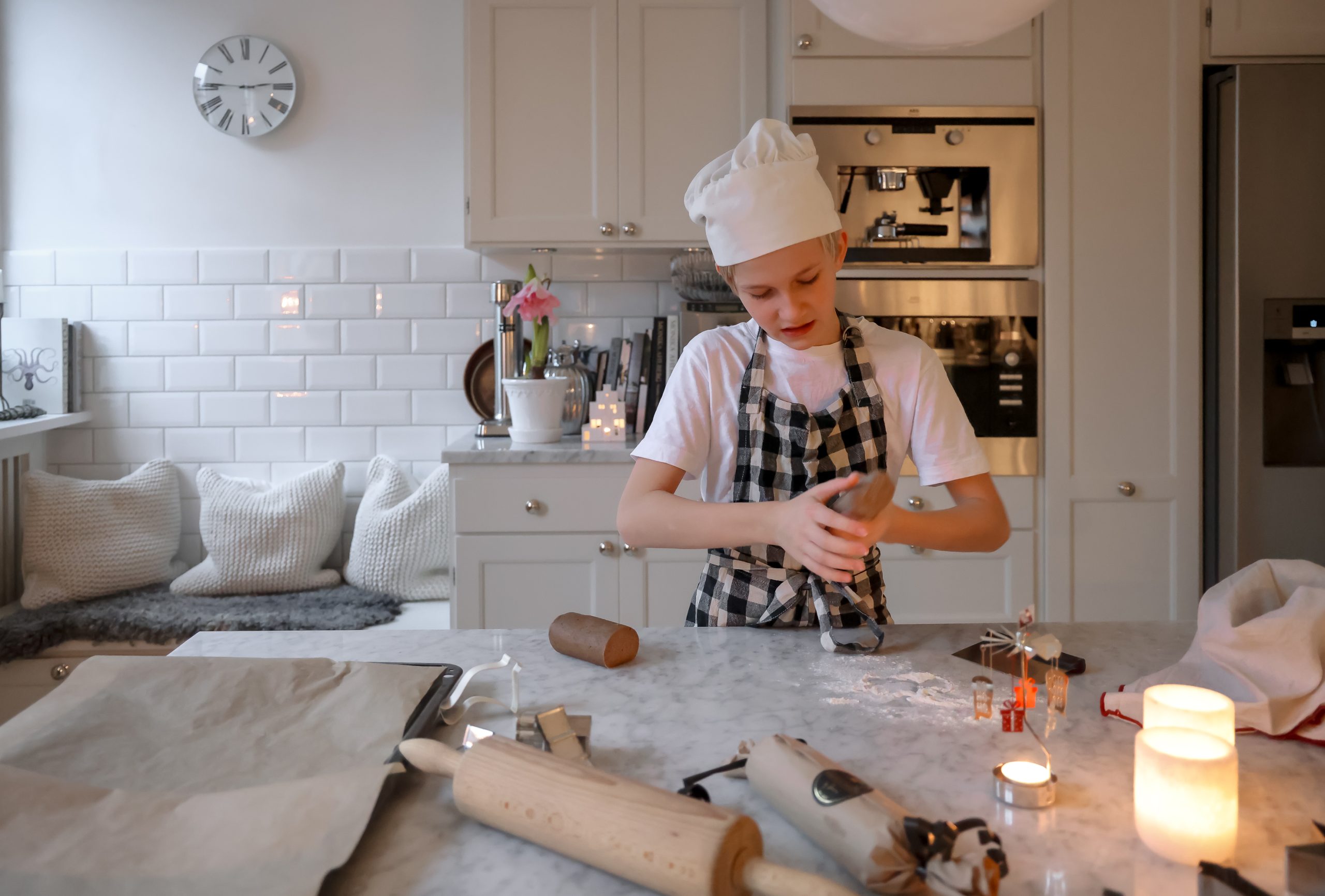 1:a december idag och utlovat pepparkasbak blev det efter skolan! Maurits tycker det är riktigt kul att baka och ingen är gladare än mamman. Storasyster Bea var också med och bakade på andra sidan bordet i köket.