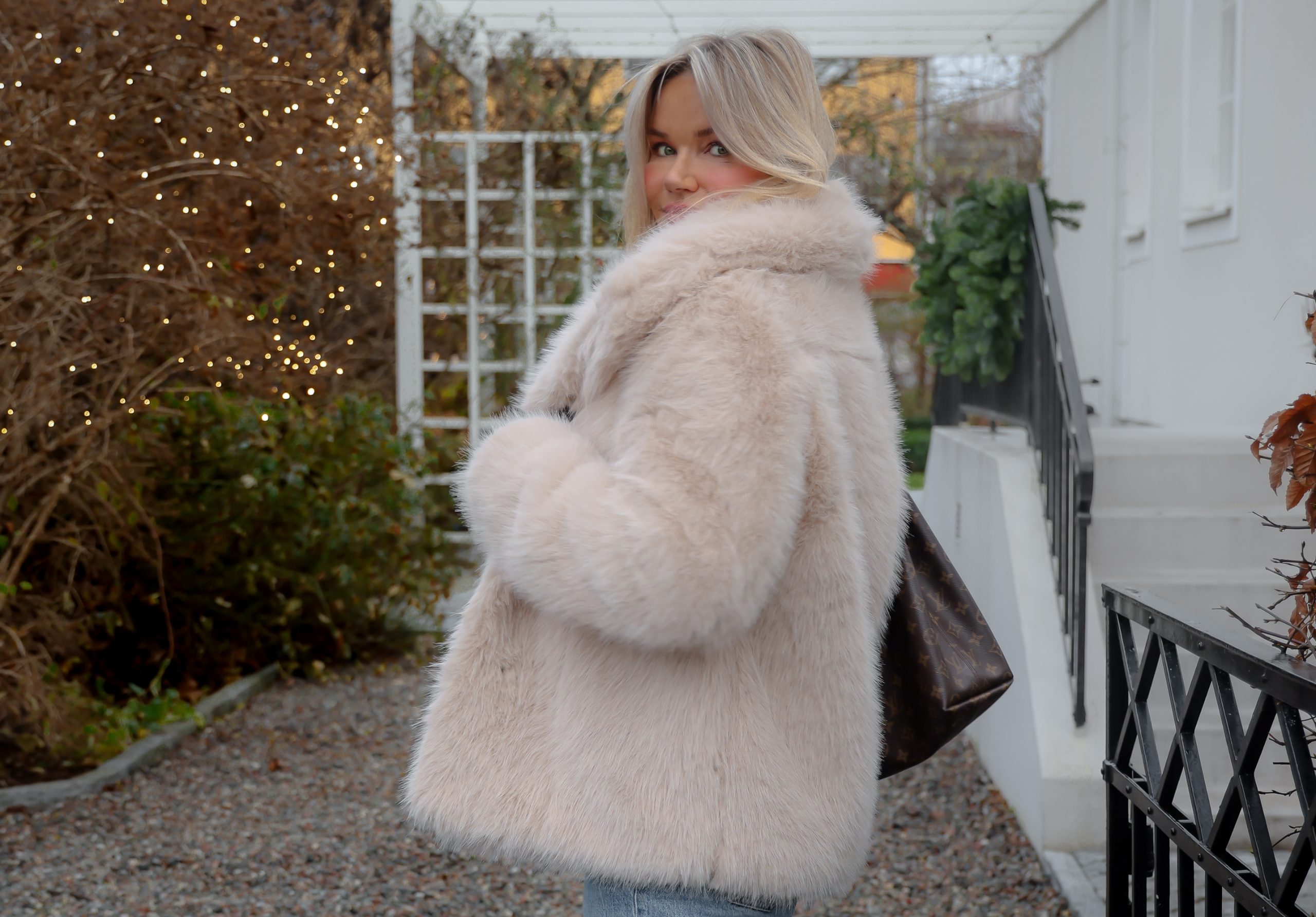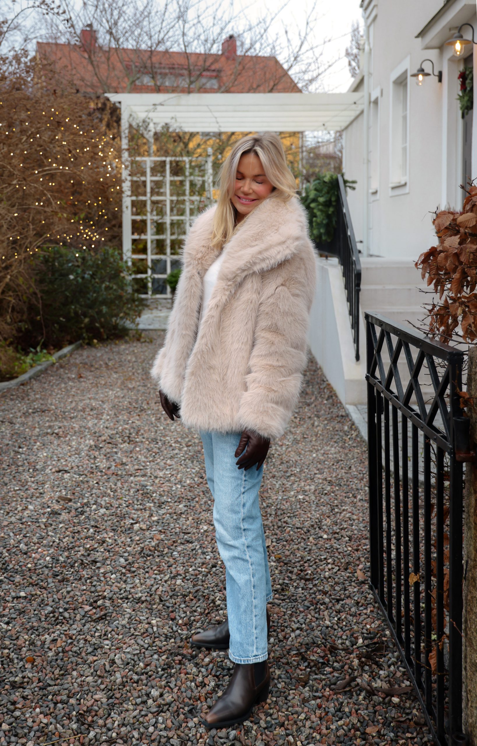 Som ni sett så är det ju faux fur som är jackan denna vinter och jag har kommit över en riktigt goding. Kortare och lite boxig i modellen med stor gosig krage i underbar lite sval pudrig beige nyans som jag älskar (bättre än när det drar åt cremegult) I fin tjock fluffig kvalité och den kommer från Hollies och slut på många ställen men här finns den kvar till bra pris också